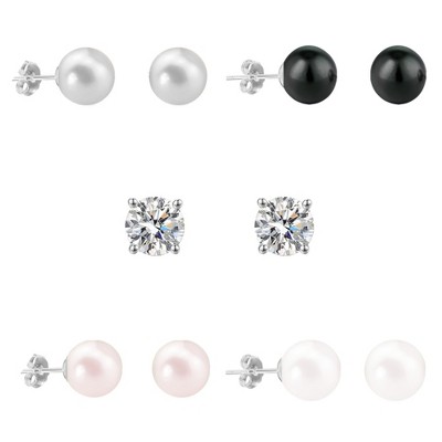 Donatello Gian Sterling Silver Pearl And Crystal Earrings Set