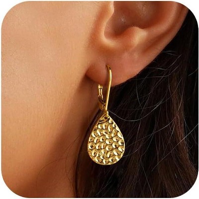 SmallRig Hammered Sterling Silver Teardrop Leverback Dangle Earrings