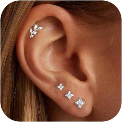 14K Gold Plated Stud Earrings - Hypoallergenic 925 Sterling Silver, Dainty Stackable Jewelry for Cartilage & Tragus