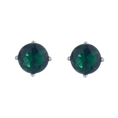Guili Emerald Luster Cubic Zirconia Sterling Silver Rhodium Plated Round Cut Elegant Stud Earrings with a Classic Vintage Appeal Style