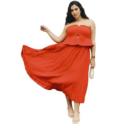 ELOQUII Strapless Pleated Midi Dress
