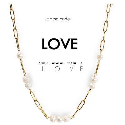 Morse Code Pearl & Waterproof Gold Paperclip Chain Necklace | LOVE