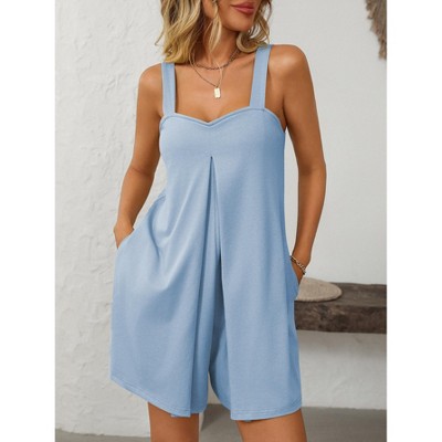 Women's Summer Casual Rompers Square Neck Sleeveless Short Overalls Bib Loose Jumpsuit with Pockets