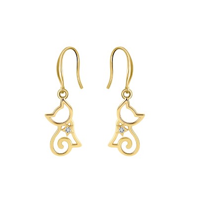 Kitty Cat Hook Dangle Earrings for Women Sterling Silver Ginger Lyne Collection