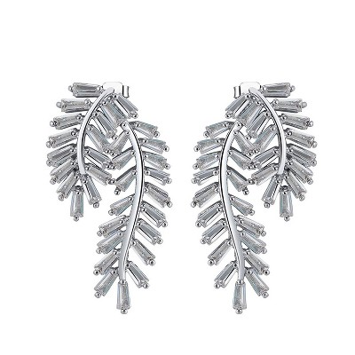 Curved Leaf Stud Drop Earrings for Women Clear Cubic Zirconia Ginger Lyne Collection