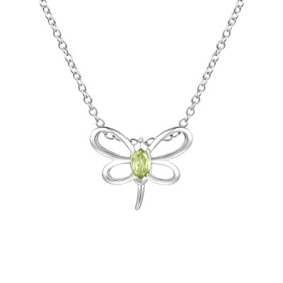 Guili Sterling Silver White Gold Plated Butterfly Pendant Necklace with Peridot Tourmaline- A Nature-inspired Piece for a Timeless Style