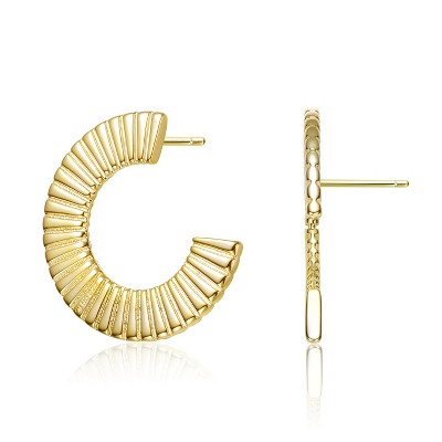 Guili Timeless Ribbed 14K Gold Plated Open Circle Drop Earrings, a Bold & Classic Accessory that Enhances Your Look with a Touch of Pure Elegance