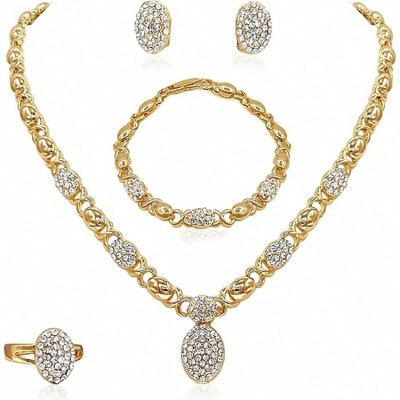 18K Gold Filled Jewelry Set: Necklace, Bracelet, Earrings & Ring for Wedding, Bridal Fashion & Sweetheart Gift