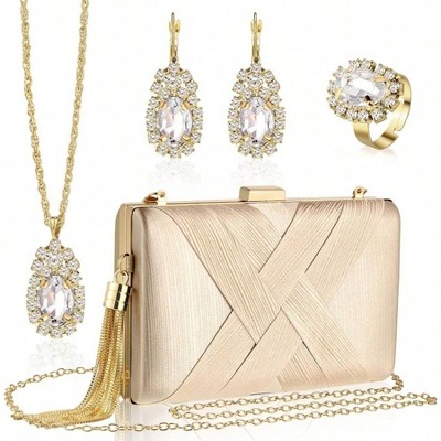 5-Piece Rhinestone Set: Clutch Purse, Necklace, Earrings & Bracelets for Prom & Bride | Women‘s Jewelry