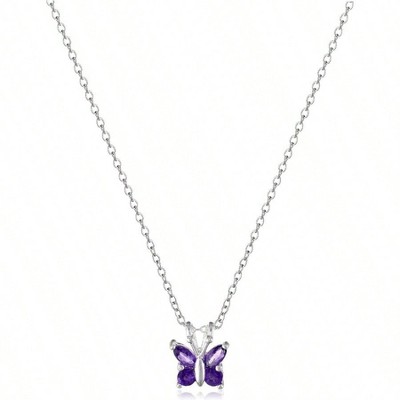 Tone Butterfly Birthstone Necklace with 18+2 Chain, Gift for Mother's Day, Birthday, Women Daughter