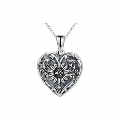 Personalized Silver Locket Necklace with Photo, Custom Engraving for Memorial or Loved One