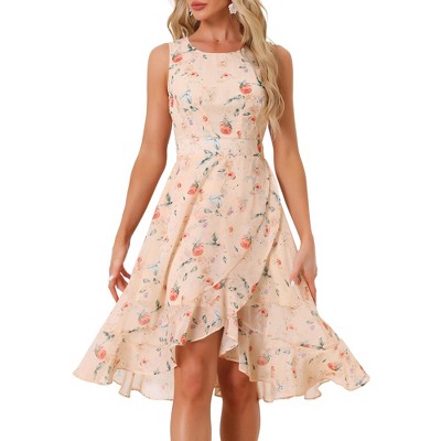 INSPIRE CHIC Women's Summer Ruffle High Low Hem Round Neck Keyhole Back Sleeveless Floral Dress