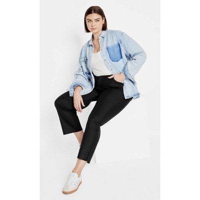 Women's Plus Size Stretch Waist Wide Leg Crop Jean - black | CITY CHIC