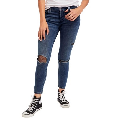 Free People Womens Fishnet-Inset Skinny Fit Jeans