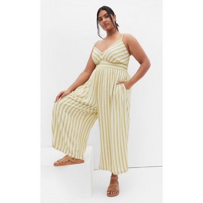 Women's Plus Size Lara Stripe Jumpsuit - khaki | CITY CHIC