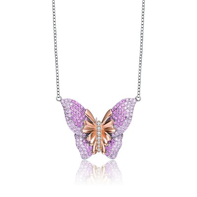 Guili Rose Gold Plated Clear and Purple Cubic Zirconia Pendant Necklace Designed for Graceful Style and Sparkle with a Chic Finish