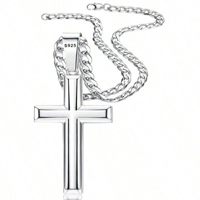 Cross Necklace, 5mm 316L Diamond - Cut Cuban Link Chain, Beveled - Edge Religious Pendant, 16 - 30'' Baptism Gift