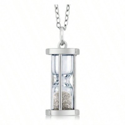 Diamond Gemstone Birthstone Hourglass Pendant Necklace in Silver with Chain