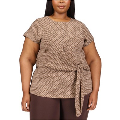 Michael Kors Womens Ruched Flutter Sleeve Floral Knit Blouse