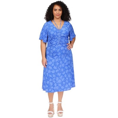 Michael Kors Womens Floral Print Tie V Neck Ruched Midi Dress