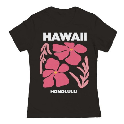 Rerun Island Women's Hawaii Hibiscus Pink Short Sleeve Graphic Cotton T-Shirt - Black XXL