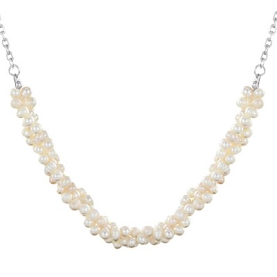 HTUTWOO Layered Chunky Pearl Choker Necklace, Silver Tassel Necklace Fashion Bead Jewelry Gifts for Women