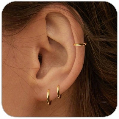 3 Pairs Gold Hoop Earrings Set: Dainty Small Huggie Hoops for Cartilage & Earlobe. Hypoallergenic Trendy Gift for Women.