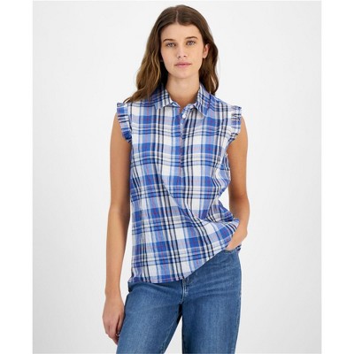Tommy Hilfiger Womens Multi Blues Peasant Blouse