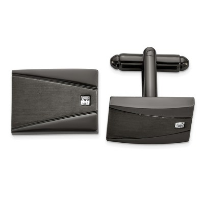 Chisel Stainless Steel Brushed and Polished Gunmetal IP-plated with Cubic Zirconia Rectangle Cuff Links