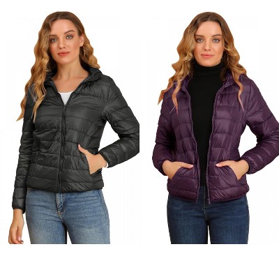 INSPIRE CHIC Women's Hooded Packable Thickened Short Down Puffer Jacket 2 Packs