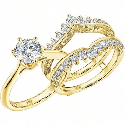 Adornia 14k Gold and Silver Plated Connected 3-Piece Ring Stack
