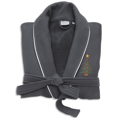 Linum Home Textiles Hotel Collection 100% Turkish Cotton Waffle Terry Embroidered Bathrobe with Satin Piped Trim - X'Mas Tree