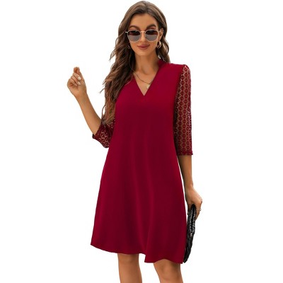 Coolmee Causal Midi Dresses for Women V Neck Lace 3/4 Long Puff Sleeve Loose Dress