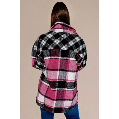 Anna-Kaci Women's Plaid Button Down Shirt Jacket with Chest Pocket Soft Textured Woven Fabric Relaxed Long Sleeve Design