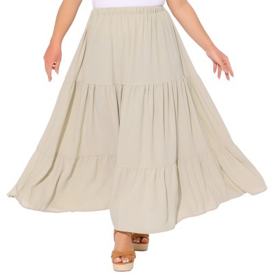 INSPIRE CHIC Women's Summer Casual Elastic High Waist Boho Maxi Skirt