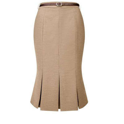 INSPIRE CHIC Women's A-Line Button Front High Waist with Pockets Midi Skirts