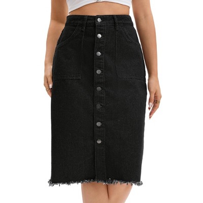 INSPIRE CHIC Women's Denim Button Down High Waist with Pockets H-Line Midi Skirts