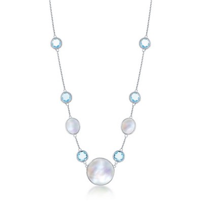 Simona Sterling Silver Round MOP & Blue Topaz Necklace - Blue - 17+2 Inch