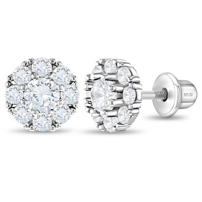 Girl's CZ Encircling Solitaire Screw Back Sterling Silver Earrings - In Season Jewelry