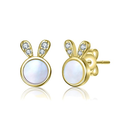 Guili 14K Gold Plated with Mother Of Pearl & Clear Cubic Zirconia Bunny Design Stud Earrings