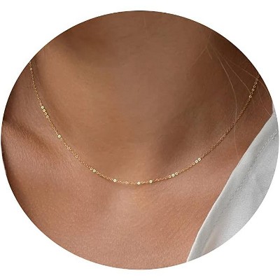 18K Gold Plated Dainty Chain Necklace - Coin Disc & Beaded Choker for Everyday