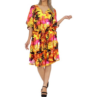 HAPPY BAY Women's Summer Holiday Beach Casual Dailywear Relaxed Fit Caftan House Sleep Shirt Loungewear Dashiki Dresses for Women 2X-3X Orange, Sun