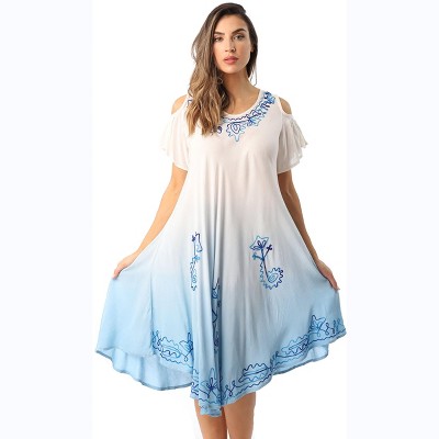 Riviera Sun Womens Embroidered Summer Dress - Short Sleeve Beach Cover Up with Woolen Embroidery- Dresses for Women