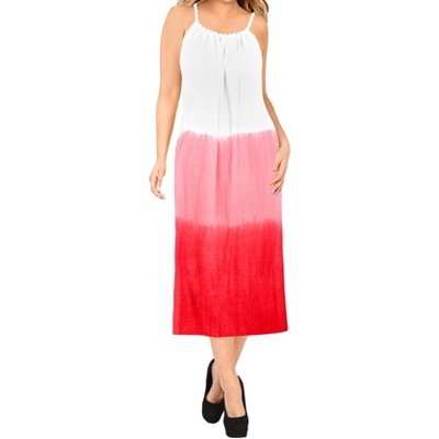 LA LEELA Women's Vacation Wear Casual Maxi Long Sundress Summer Vacation Loose Maternity Spaghetti Strap Dress 1X White, Tie Dye Design