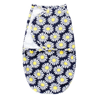 Hudson Baby Infant Girl Plush Faux Fur Swaddle Wrap, Navy Daisy, 0-3 Months