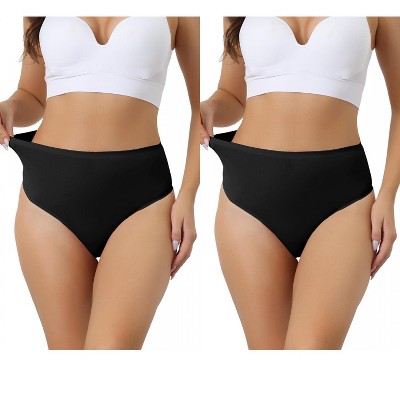Allegra K Women's High Waist Tummy Control Stretch T-back Breathable Comfortable Thongs 2 Packs