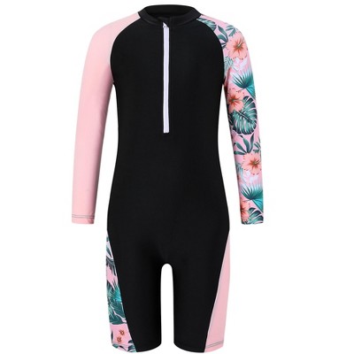 Kid Boys Girls Rash Guard Sets One Piece Swimsuit with Zipper Patchwork Long Sleeve Beach Bathing Suit