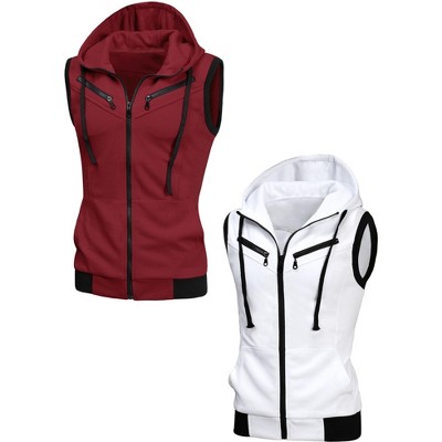 Lars Amadeus Men's Zip up Drawstring Hoodie Vest with Pockets 2 Packs