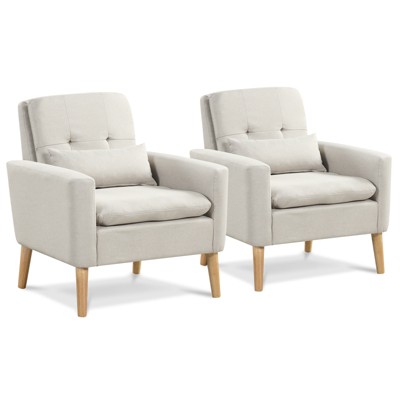 Yaheetech Modern Armchair Accent Chair Faux Leather Tufted with Solid Wood Legs