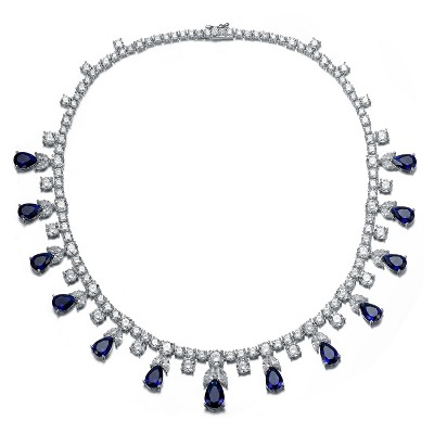 Guili Tennis Station Necklace with Sapphire Dangles, Elegant Gold Plated Necklace Featuring Sapphire Accents for a Touch of Glamour and Timeless Style